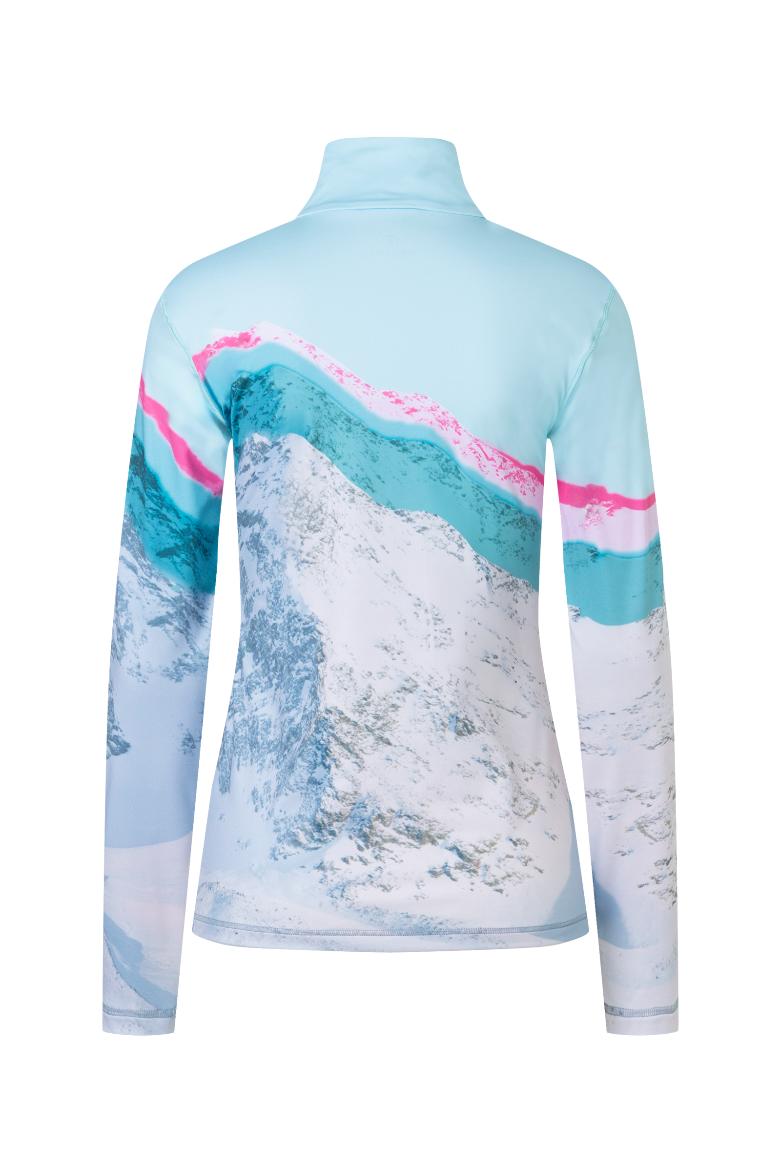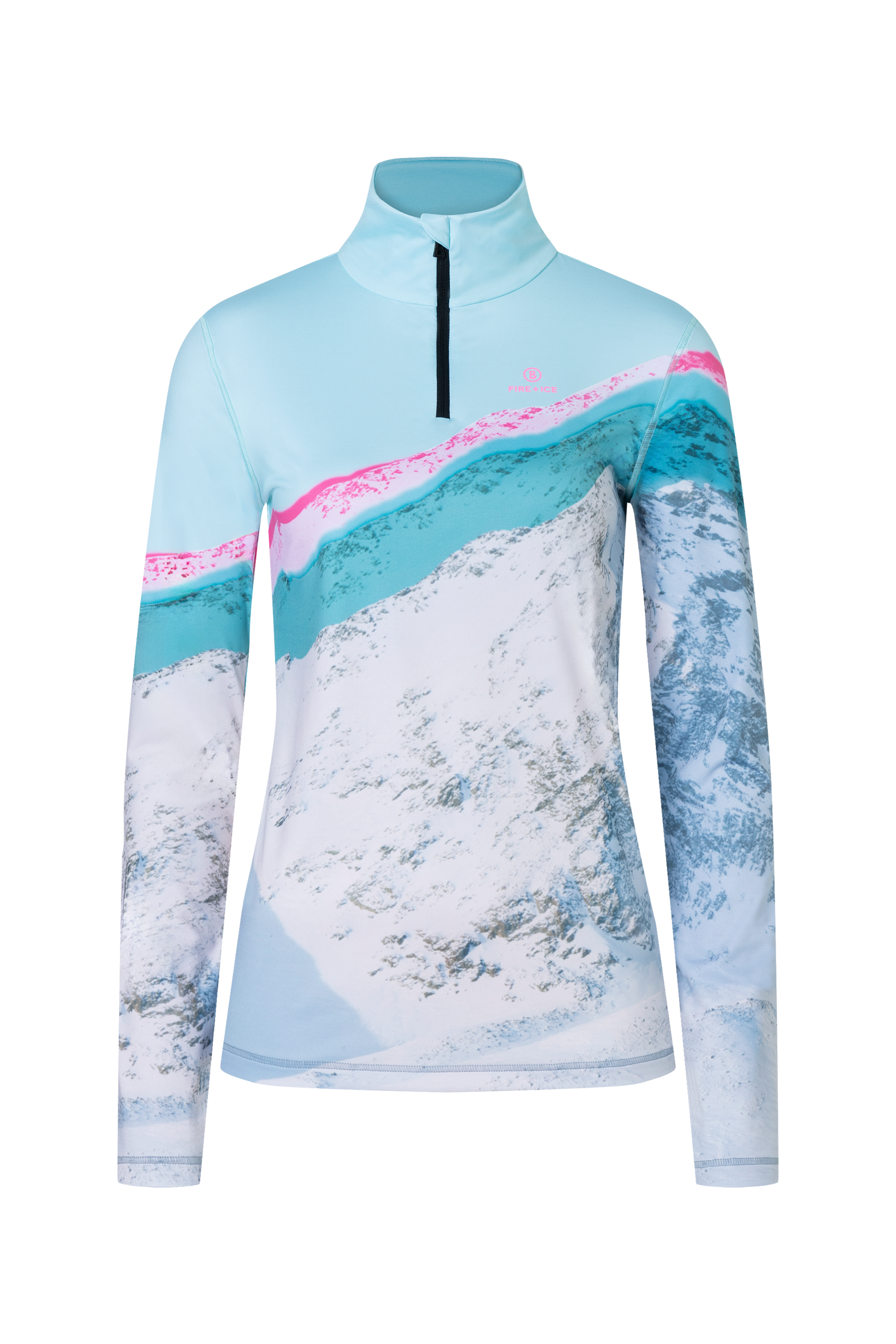 In a design print with signature logo details, the Ilvy first layer is the highlight of every performance style and its power stretch fabric guarantees total freedom of movement. The zippered stand-up collar and shaping overlock seams round off the piece.