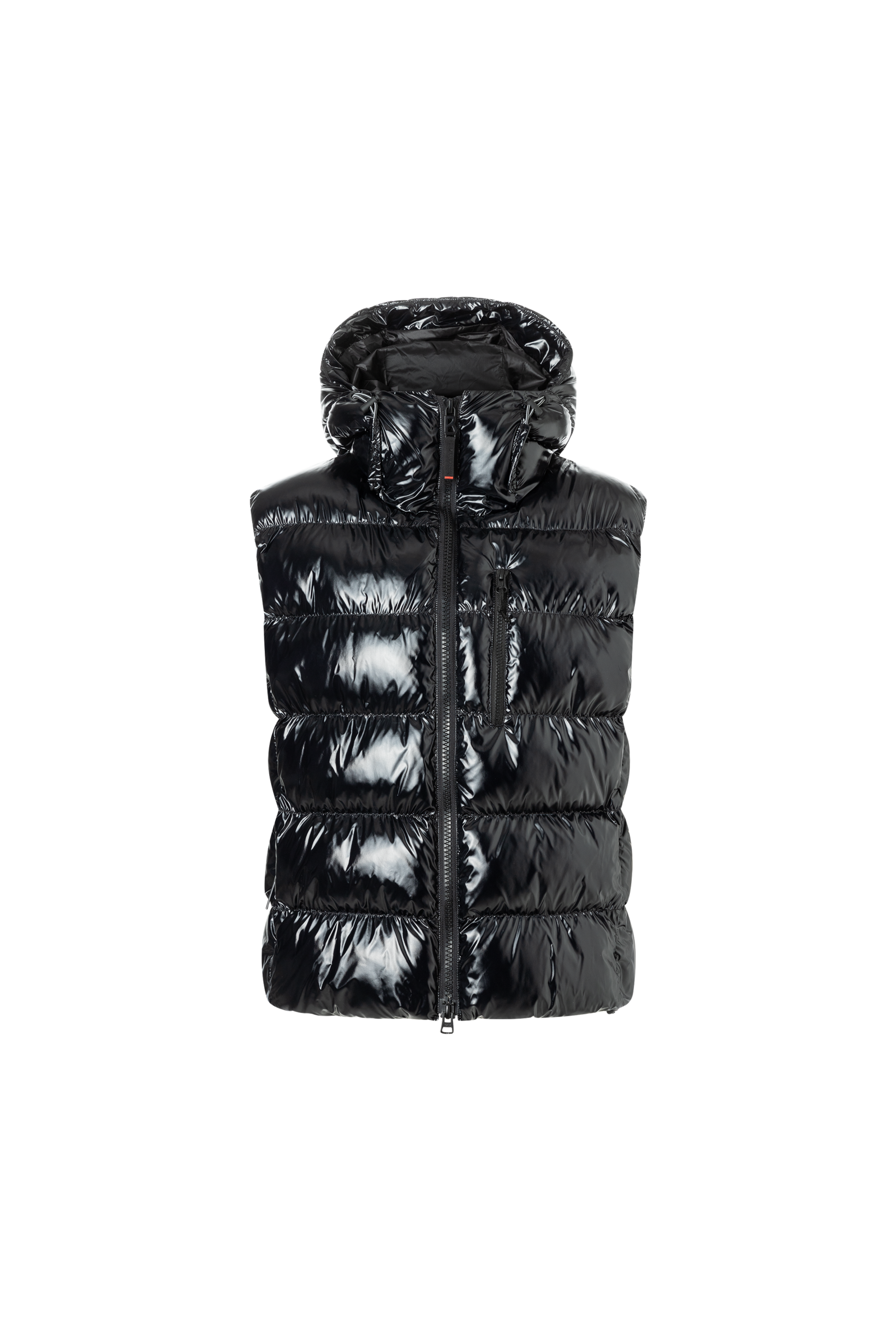 With Thermore® Ecodown® padding made of recycled technical fibers, the Naima quilted vest is sure to please as a warm and cozy garment. It is further enhanced by its water-repellent properties. The lacquered coating, the adjustable hood and the zippered pockets set off the design, while signature details provide an accented finish.