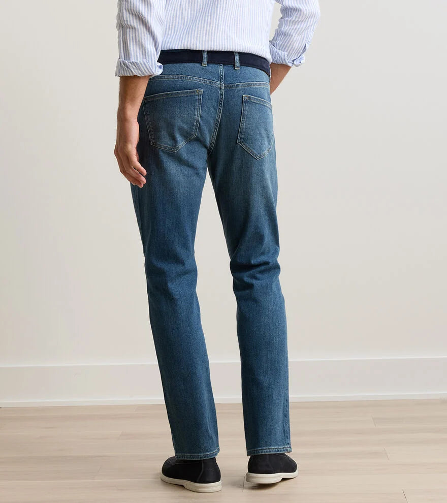 Our Vintage Washed Denim elevates timeless style with a masterful eye on the details and the perfect hint of stretch. The fabric showcases subtle whiskering and sanding for a casual, lived-in look that’s versatile enough to be worn with a T-shirt or paired with a soft jacket. They're finished with an Italian leather back patch and classic five-pocket styling.