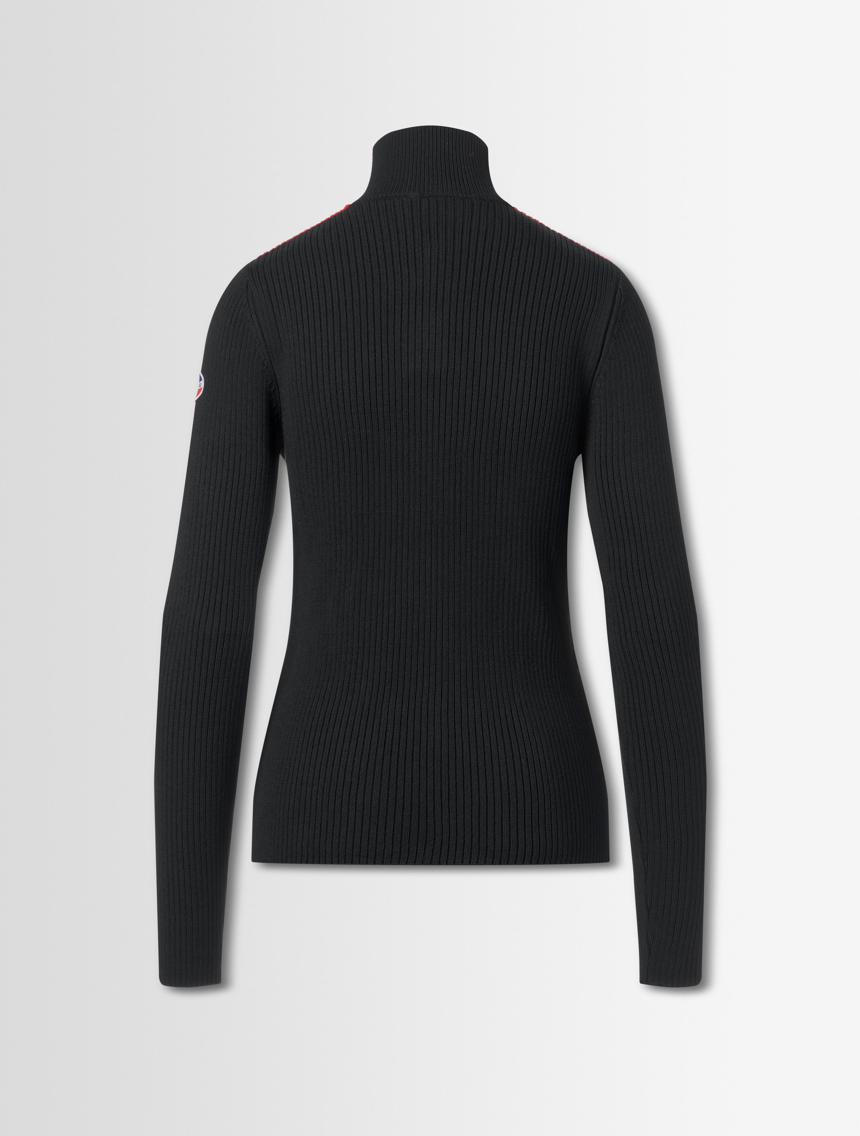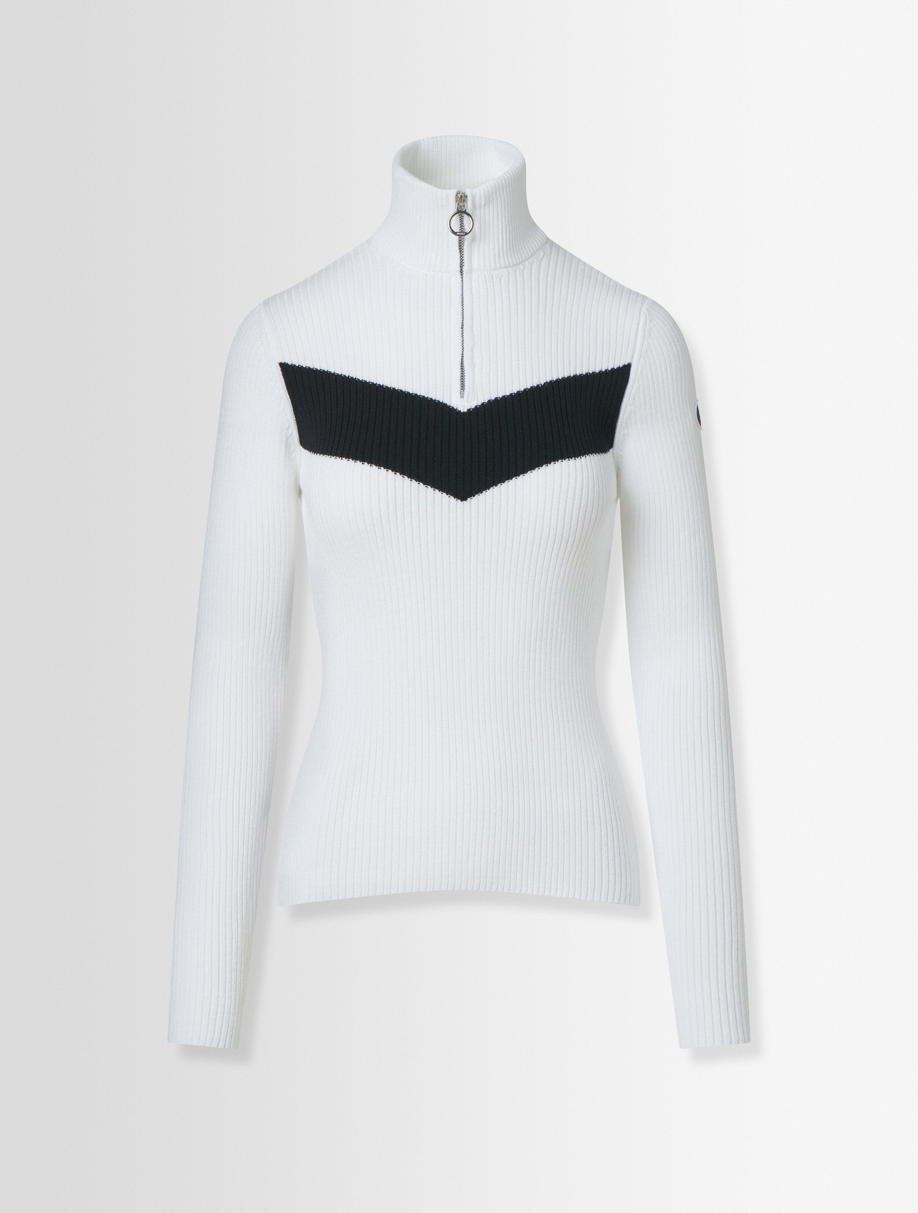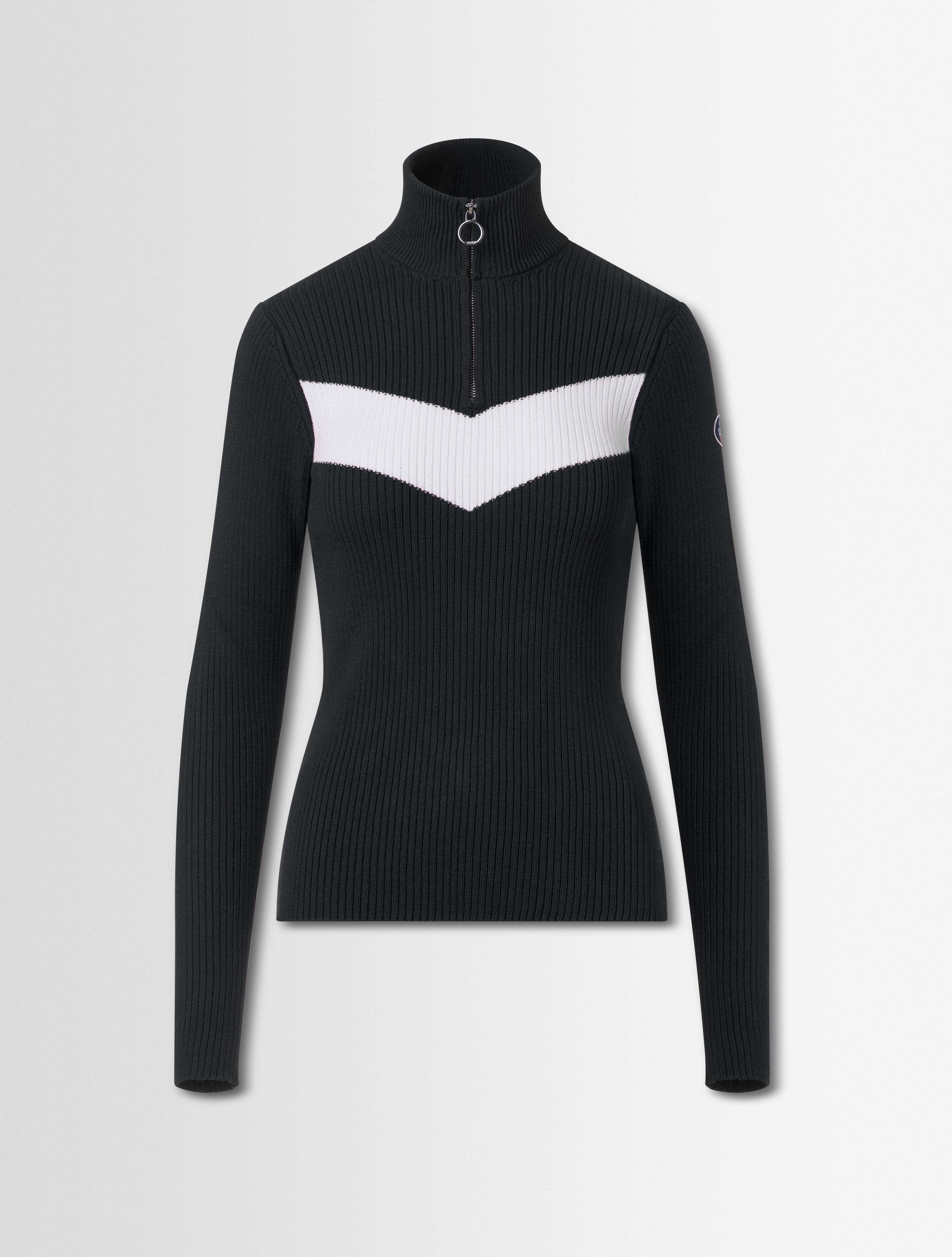 Fusalp's Andromede sweater can be worn as a mid-layer on the slopes, or solo at après ski drinks afterwards. It's rib-knitted for a close fit with a signature chevron stripe and cozy turtleneck – keep it fastened to stay warm or unzip for a more casual look.