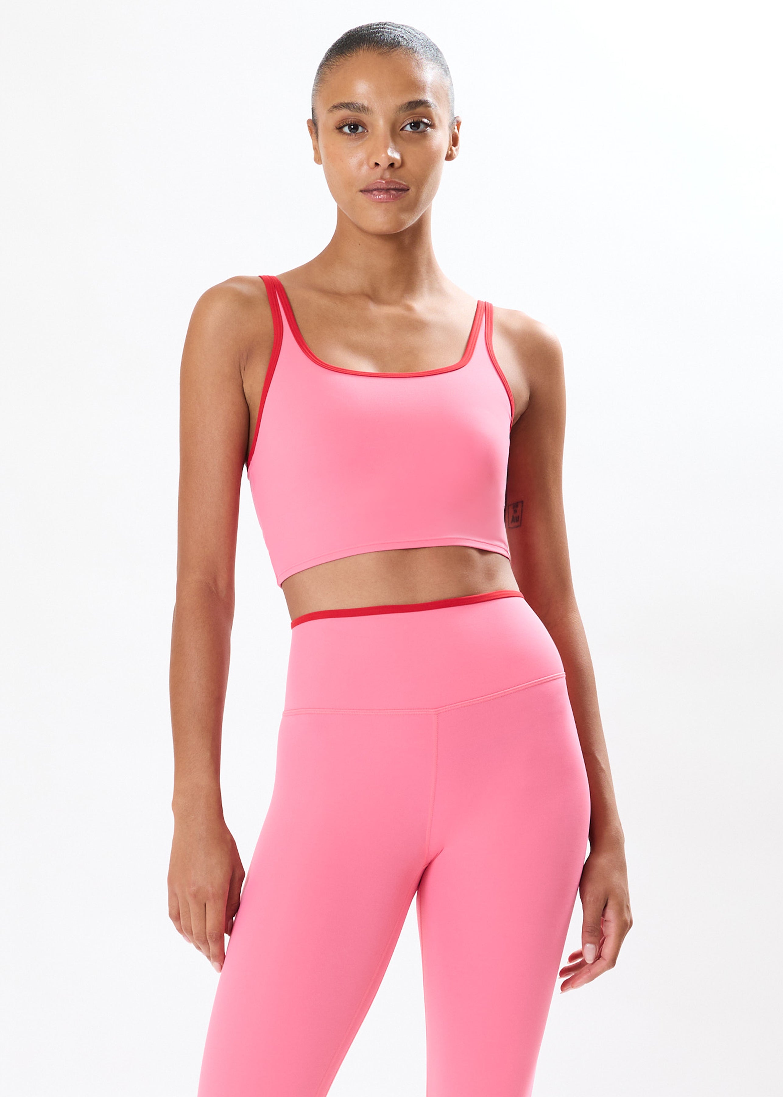 A supportive bralette with a square neckline outlined in contrast color trim. Complete the look with the matching Easton High Waist Legging, both in high performance Rigor fabric.