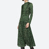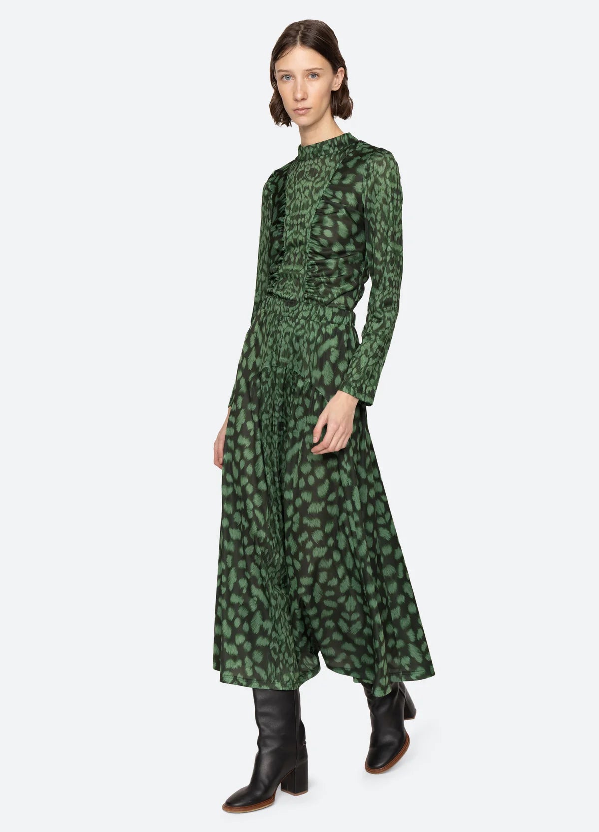 The Claude leopard print skirt features a flattering midi silhouette and an elastic waistband, offering both style and comfort.