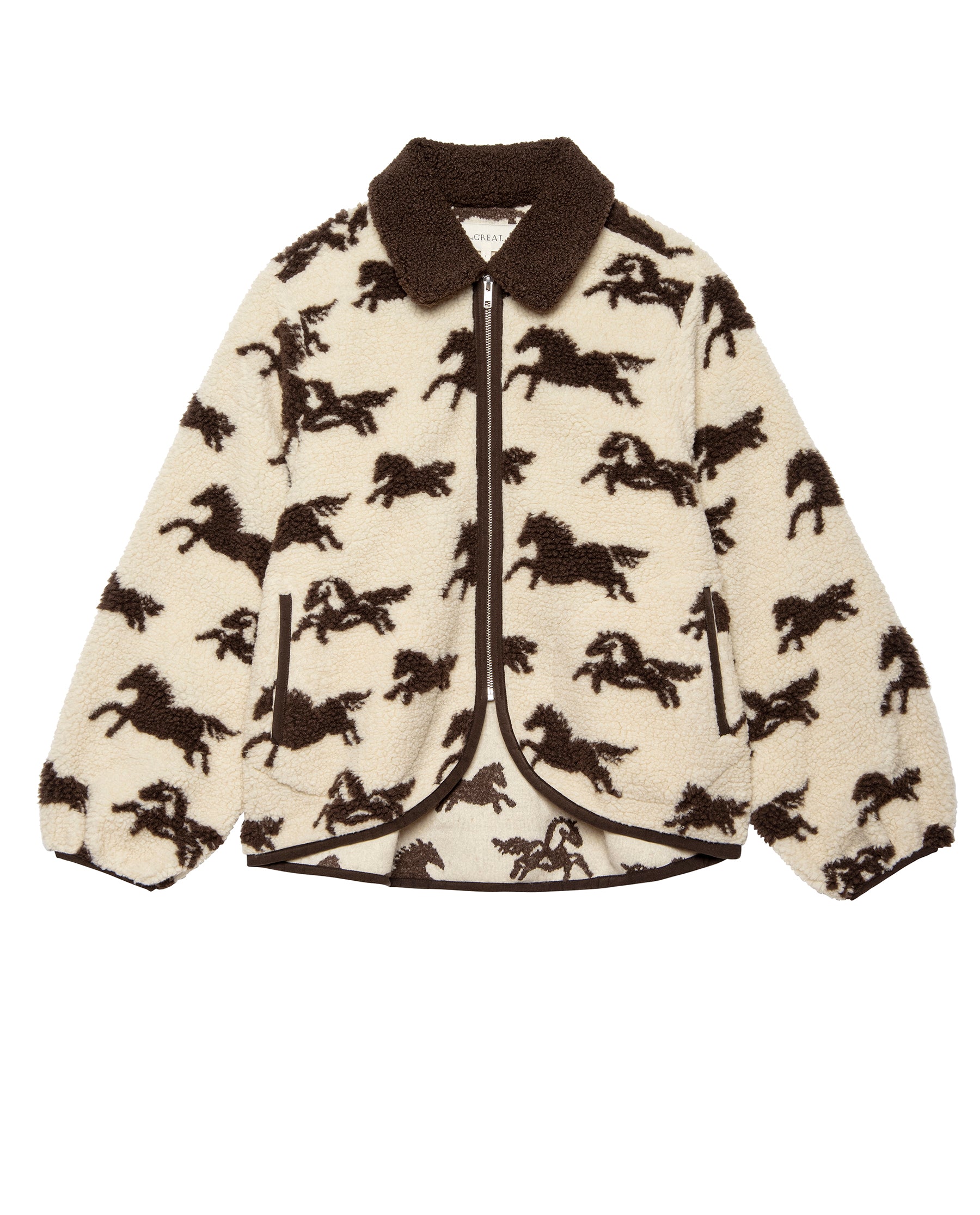 The Pasture Jacket. is ready for outdoor adventures. The cozy and relaxed zip-up jacket is crafted from the softest plush fabric and tells the story of wild horses running across a meadow. Distinguishing characteristics include a charming shirttail hemline, contrast stretch binding around the edges, a fluffy plush collar, billowy sleeves, and welt pockets in an earthy brown that pairs with literally everything in your closet.
