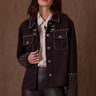 This little beauty is like getting a two-in-one for your wardrobe; the luxe fabric has a heavy hand and the classic straight-cut button-down silhouette can easily be styled open as a jacket or buttoned up as a top. It’s embellished with pintuck pleats, butterfly concho accents, and some statement studding – signature DDR style!