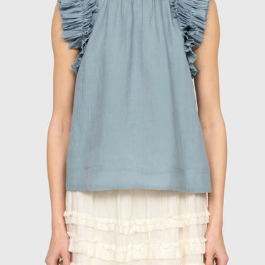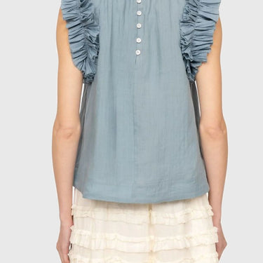 Elegant and effortlessly feminine, this flutter sleeve blouse features a ruffle neckline and a flowing silhouette for a graceful, refined look. Designed with timeless charm in mind, it’s the perfect piece to elevate any outfit.